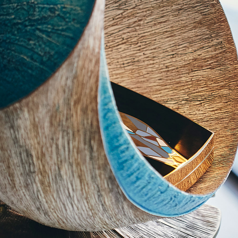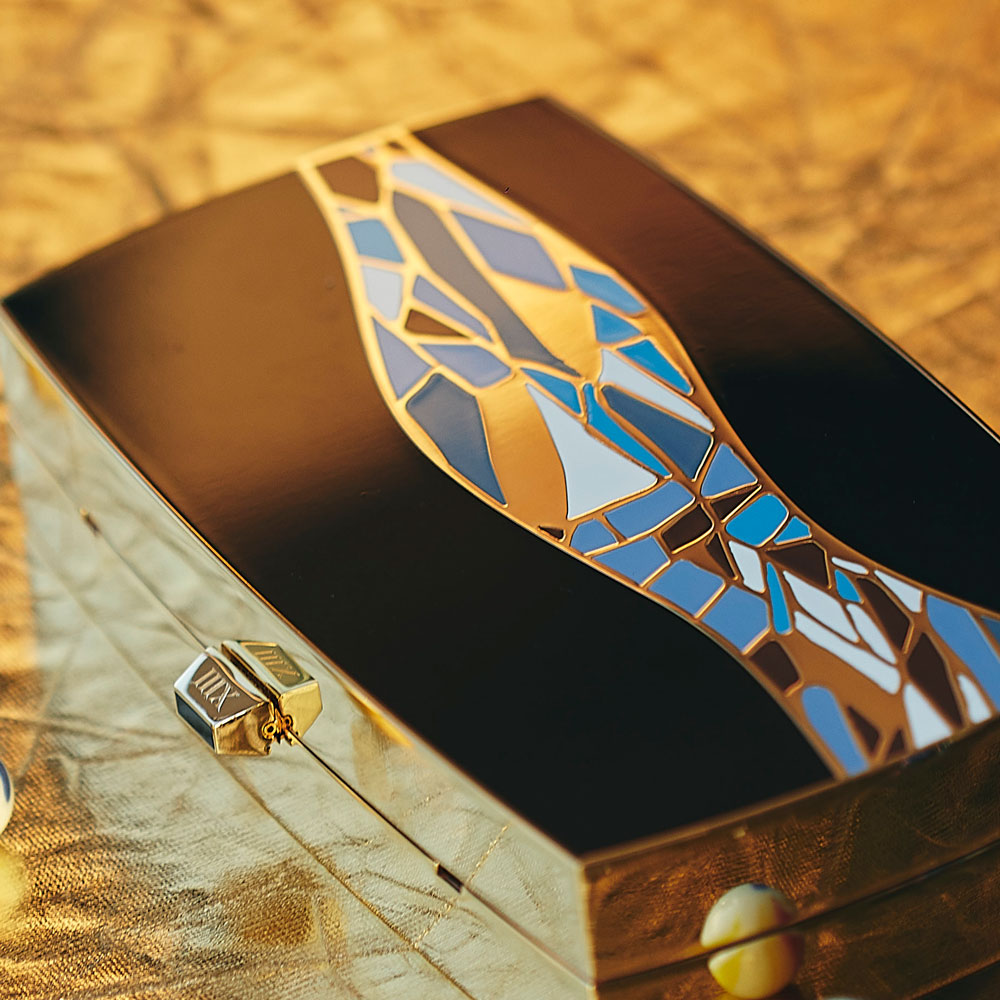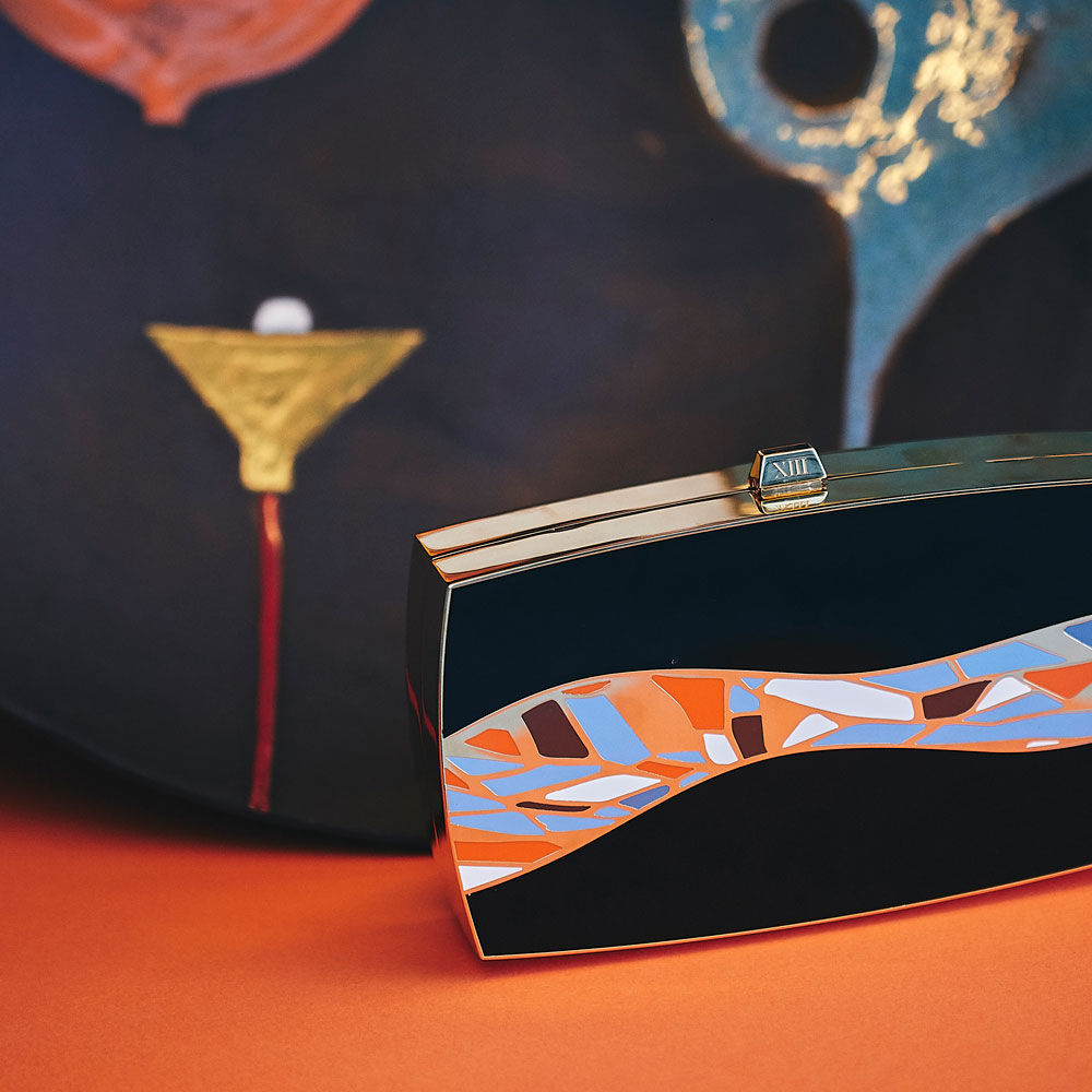 Bag #5 is called “The First Wave”. It is both a visual interpretation of that first time she sets her eyes on the crystal-clear ocean, but also an expression of that first wave of freedom that runs through her body, and that fills her with hope & relief.