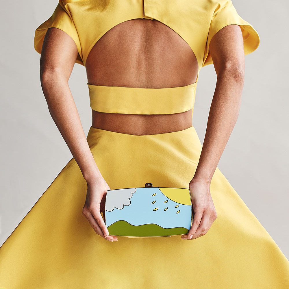 Then, as illustrated on bag #3 of the collection, “The Journey” begins. She travels night & day, roaming tirelessly through the unknown, in search of the land of her calling.