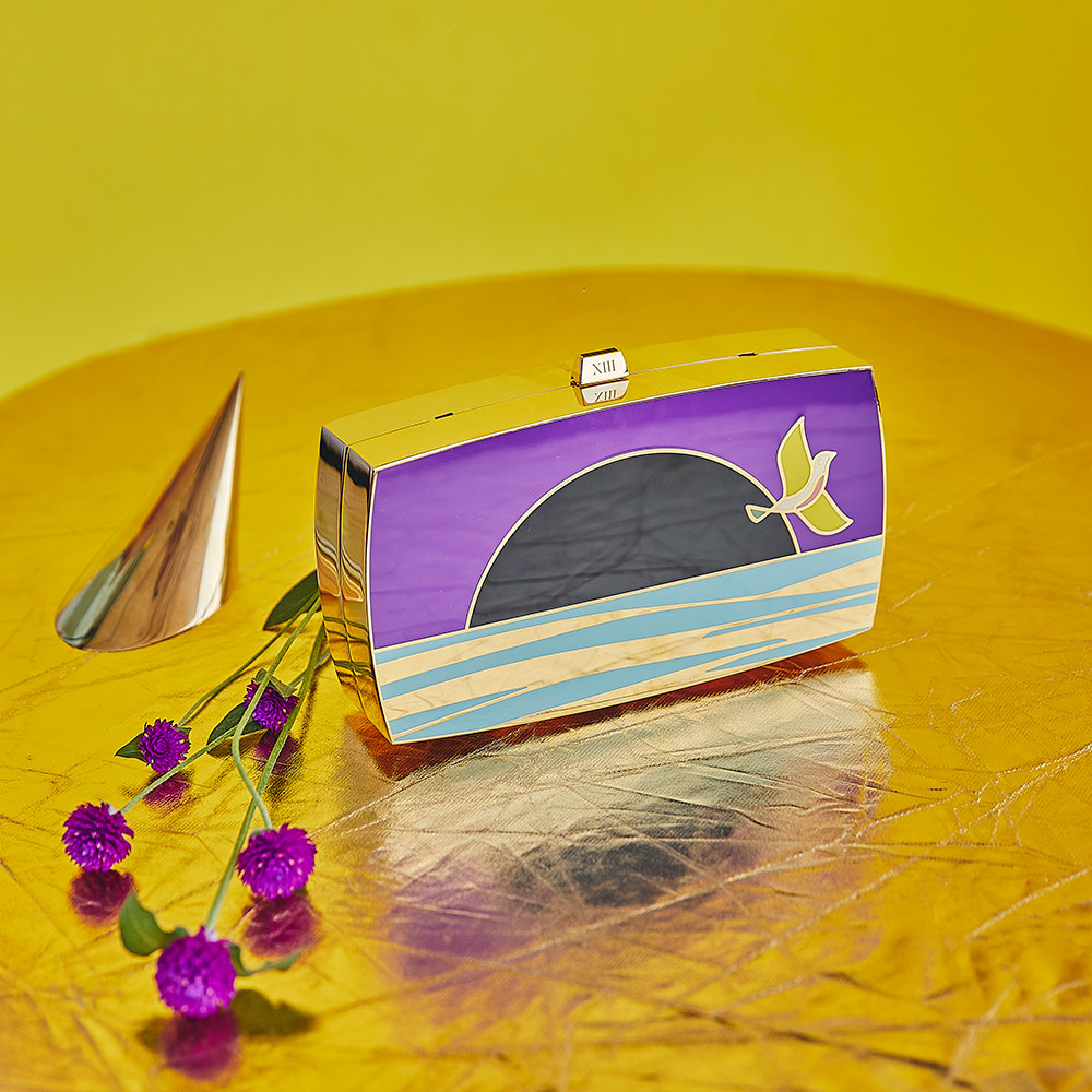 As if to draw in the dawn of a new day, bag #11 “The Sunset” comes in to portray this woman who is not only getting ready for a night out on Isla Mujeres, but who is blending seamlessly into the sun, letting herself be guided by its rays of light into a new horizon, a new vision… A new eternity filled with possibility.